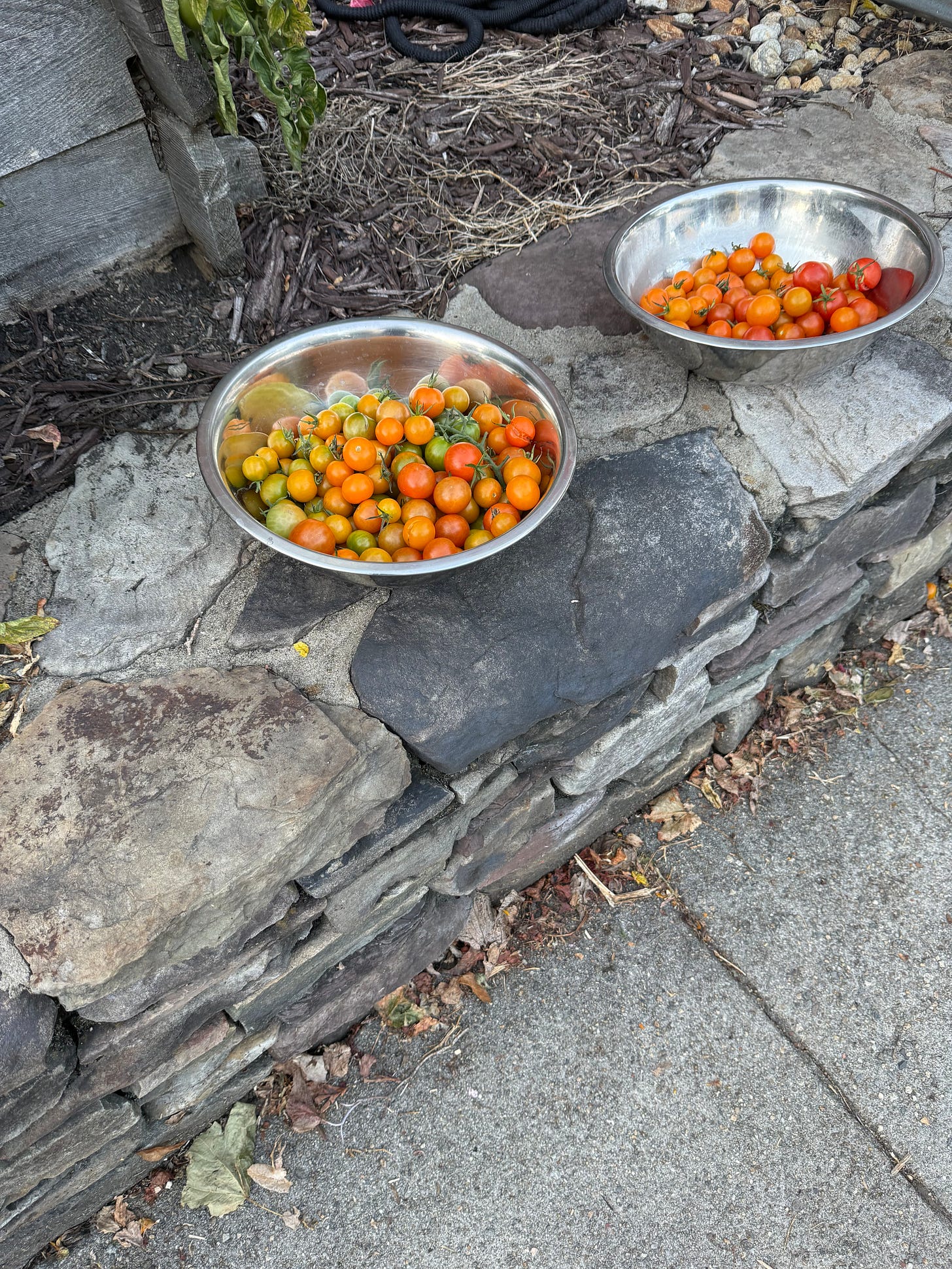 A few days later, as I walked by, the people had harvested the tomatoes, but rather than take them all for themselves, they put them into bowls on the fence for people to take as they walked by.