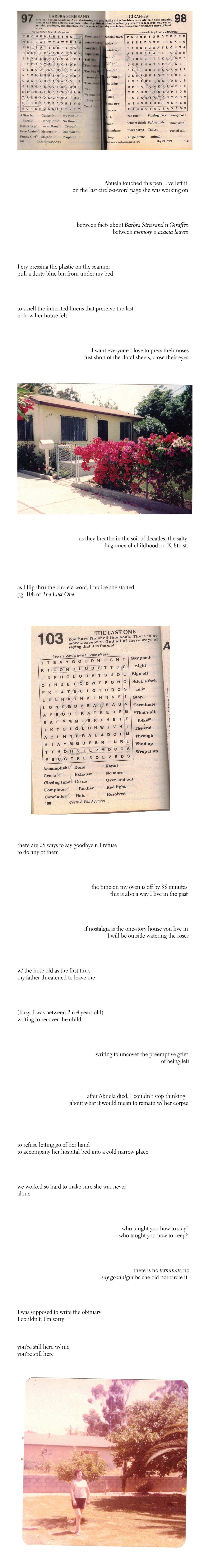 “Watching someone die is a kind of intimacy. In grief, I keep, I cherish. I bring lilies for my dead. I learn how to stay.”