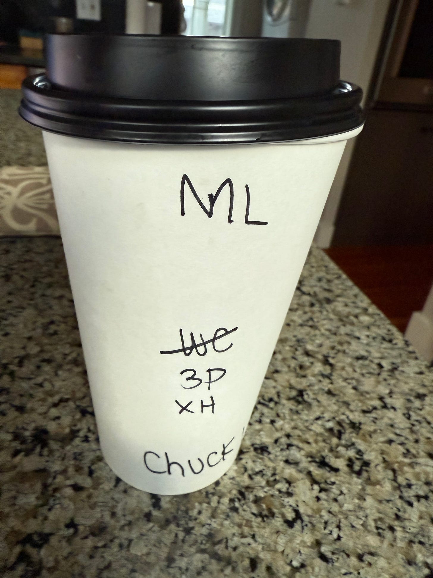 “Good morning Chuck,” is the barista’s greeting. Maybe that’s the reason I drive to get my costly drink, when I can make it at home for a fraction of the cost.