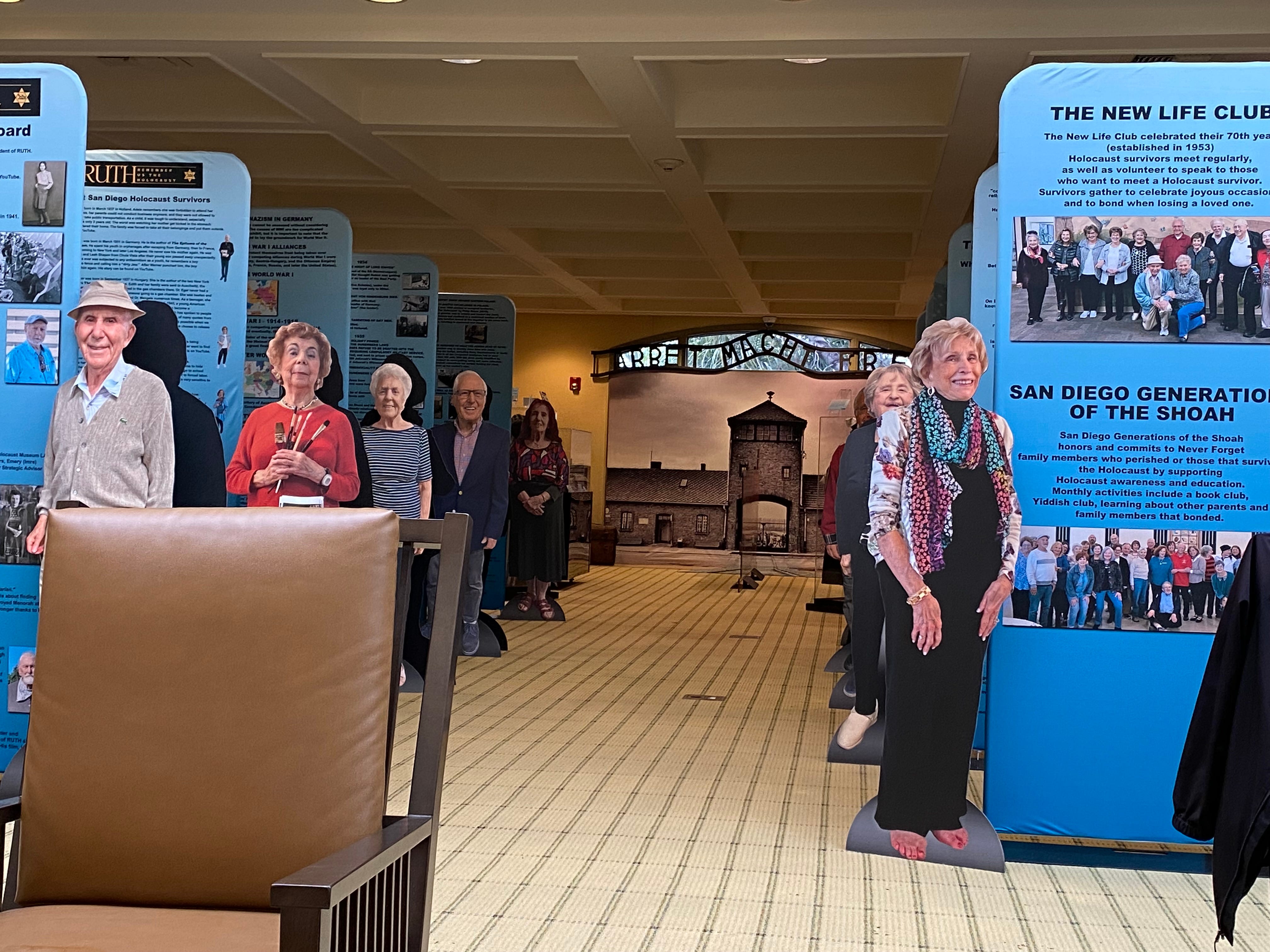 The photo is of an exhibit in the La Jolla public library. The cutout figures are holocaust survivors who live, or lived, in La Jolla.