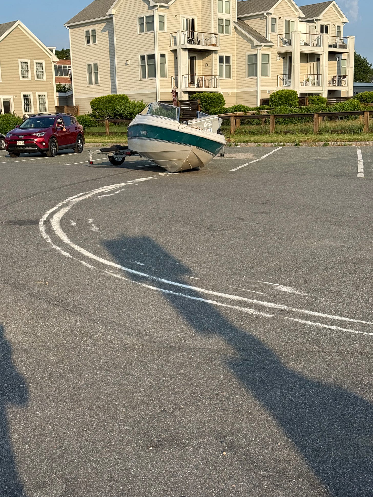 When the boat bottom scraped, he tried to reverse, and you can see what happened. His wheels collapsed and he ended up dragging the boat, and the wheels, up the ramp and across the parking lot.
