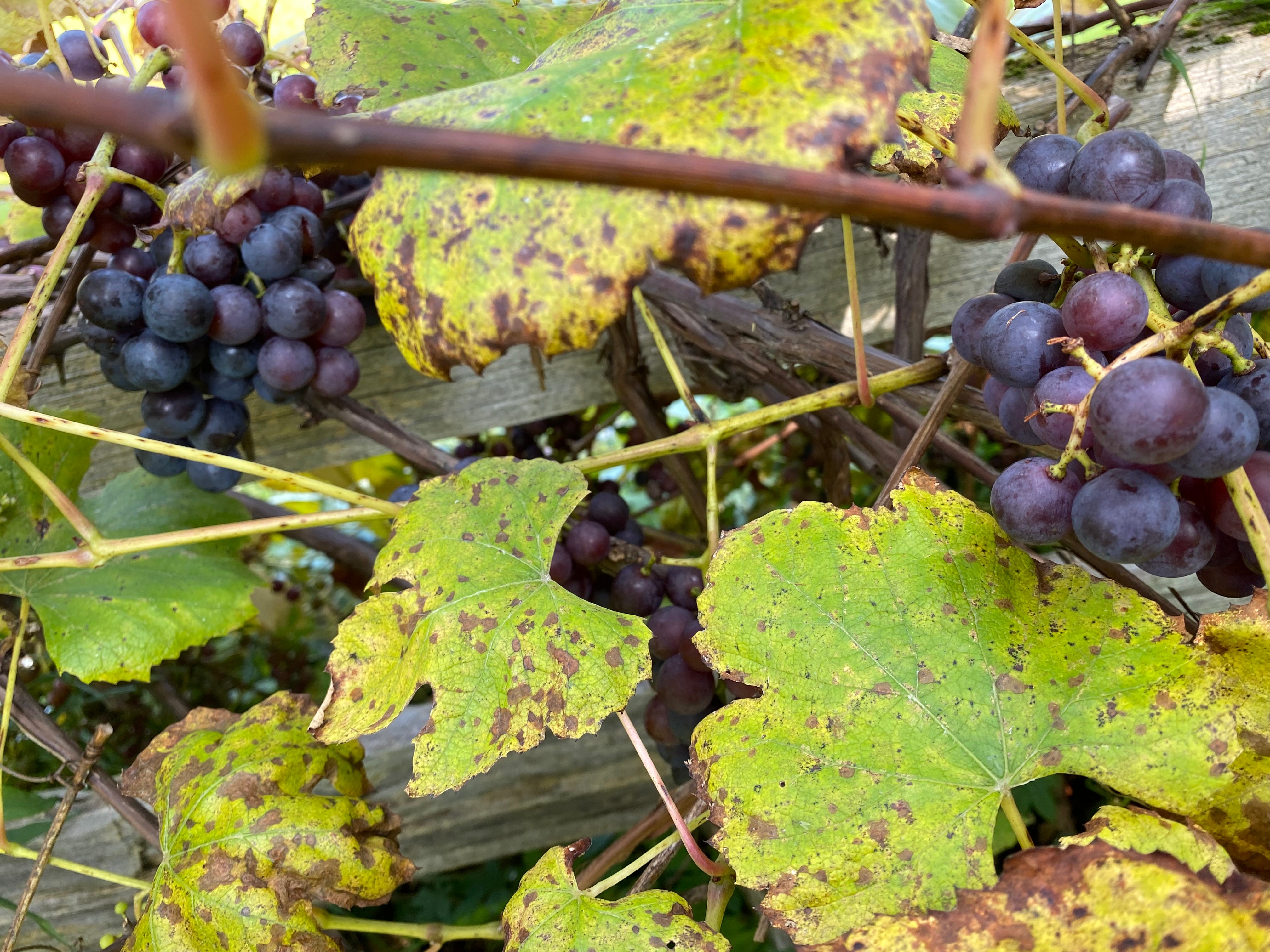 The tiny seedling promise of abundant grapes first appeared in late June. The vines had been trimmed in winter. When they were finally large enough to pick a few to try, they were mouth-puckering sour.